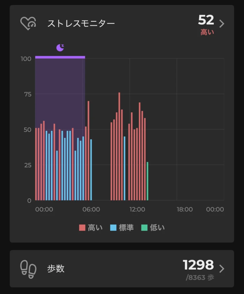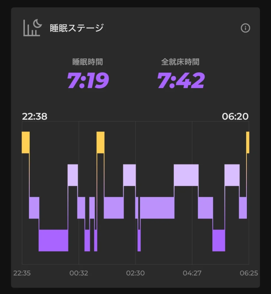 午前2時ごろに起きてしばらく目が覚めてしまっているのと、睡眠時間が少々短いですね。